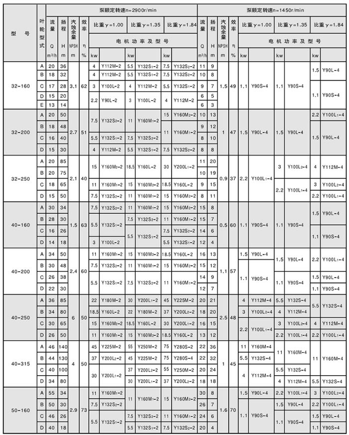 六、CZ型化工泵性能參數表